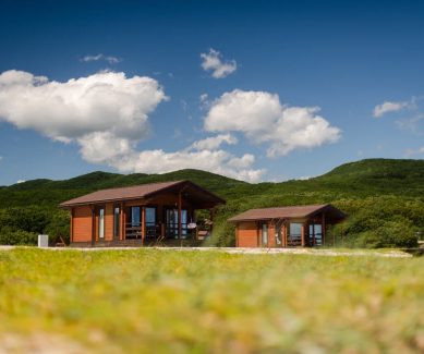 На территории комплекса нет ничего лишнего: только экологичные деревянные дома, водный прокат, три бани и летний кинотеатр. Атмосферу создают лазурное море и ни с чем не сравнимая природа. Т-ссс!