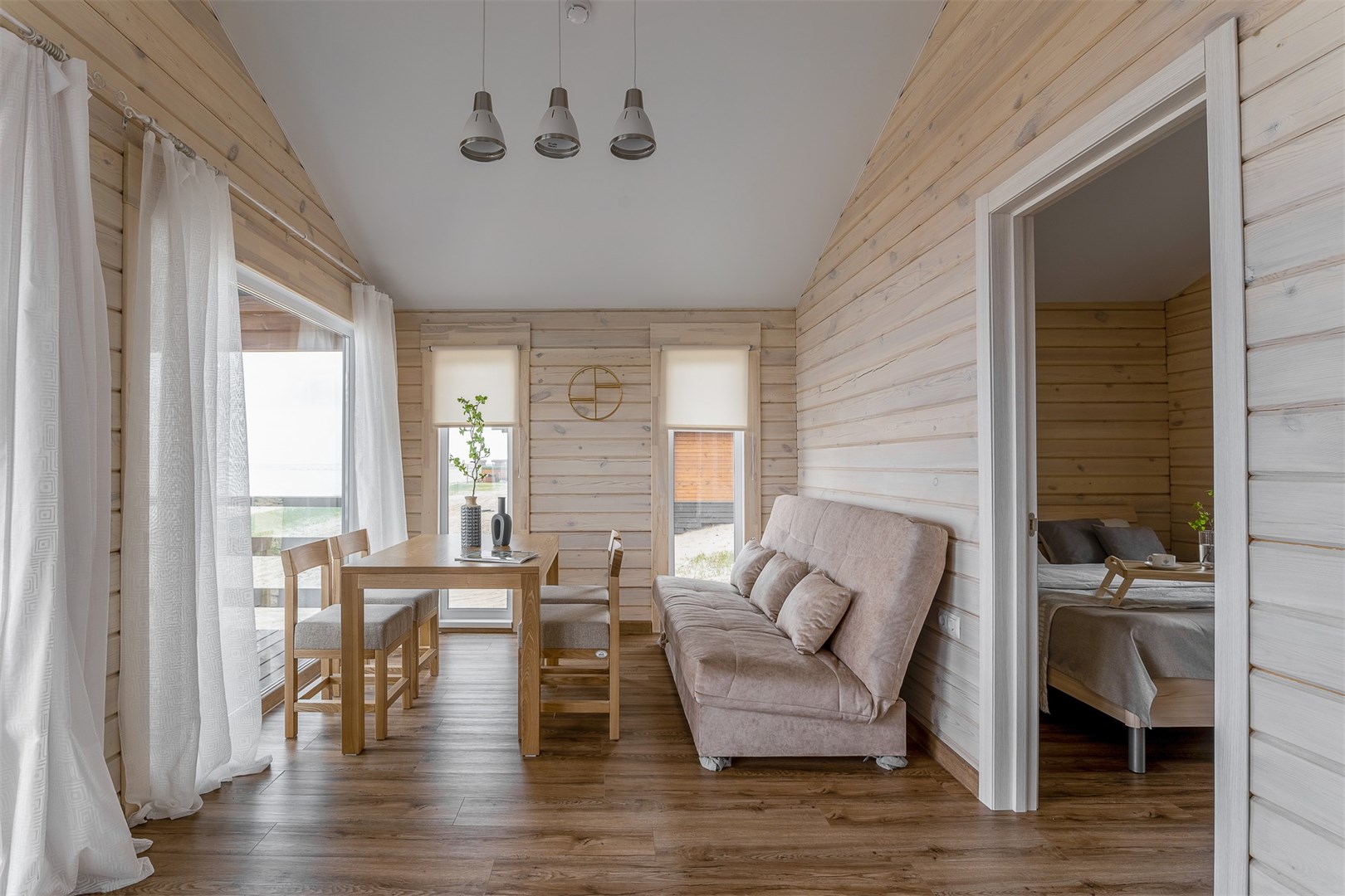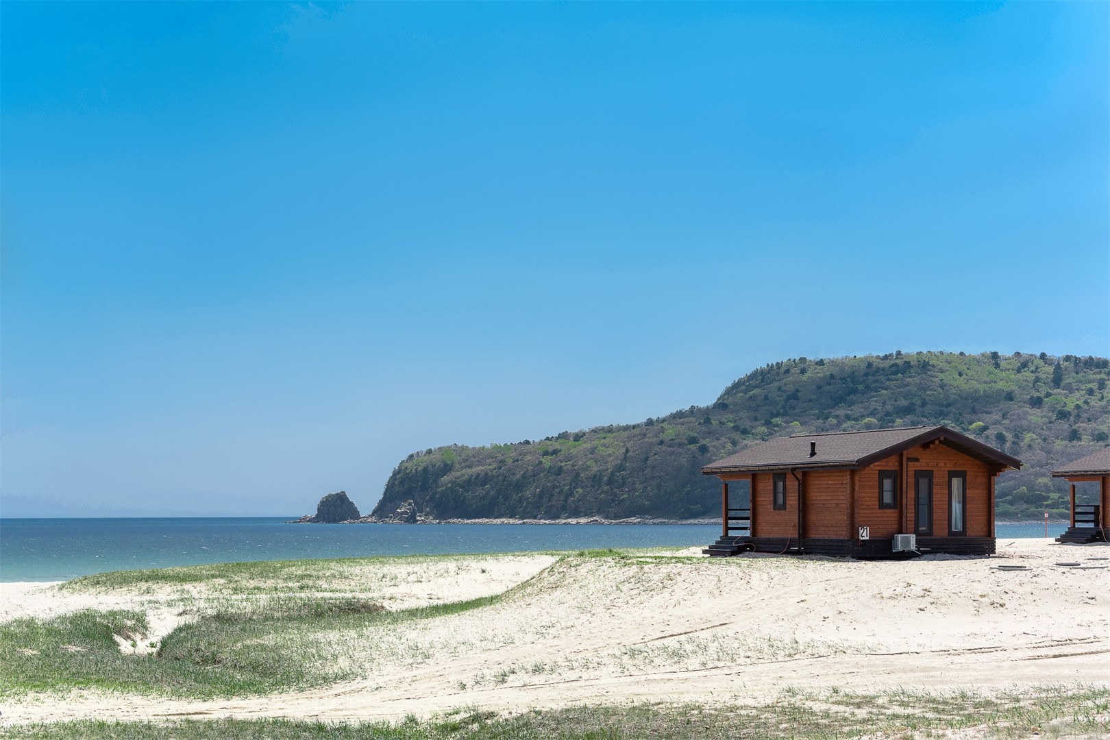 Уютный коттедж из лиственницы с одной спальней, ванной и обеденной зоной. Теплые полы, мини-кухня, панорамные окна и терраса с видом на море. Самое близкое расстояние к морю — всего 30 метров!