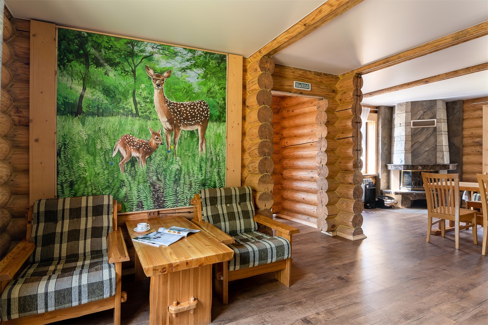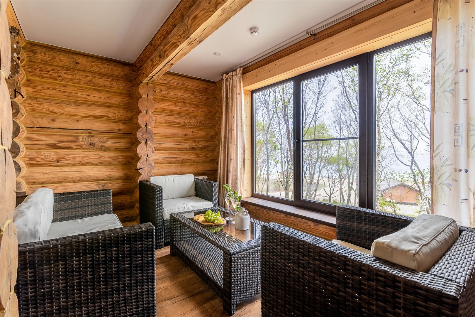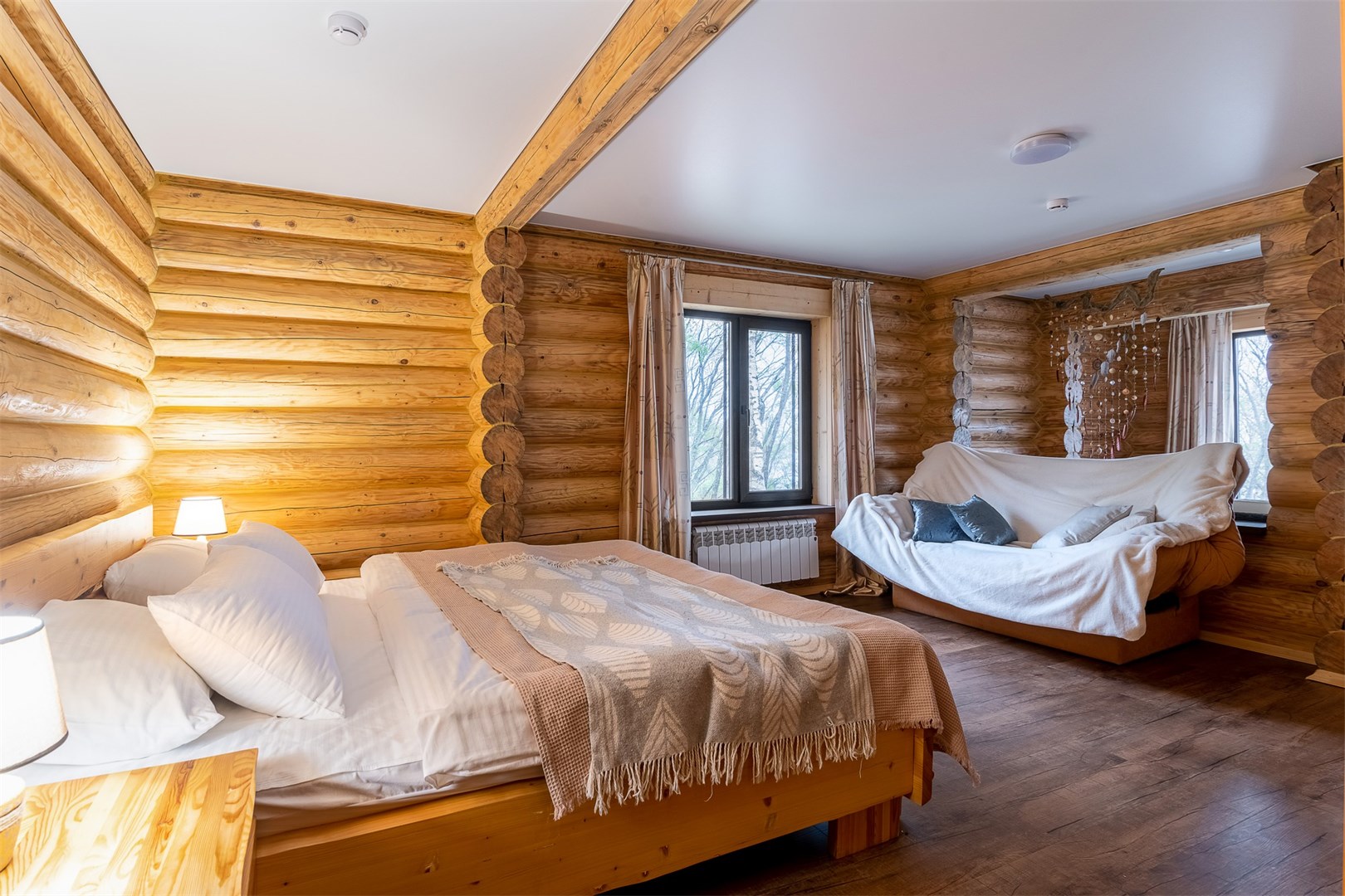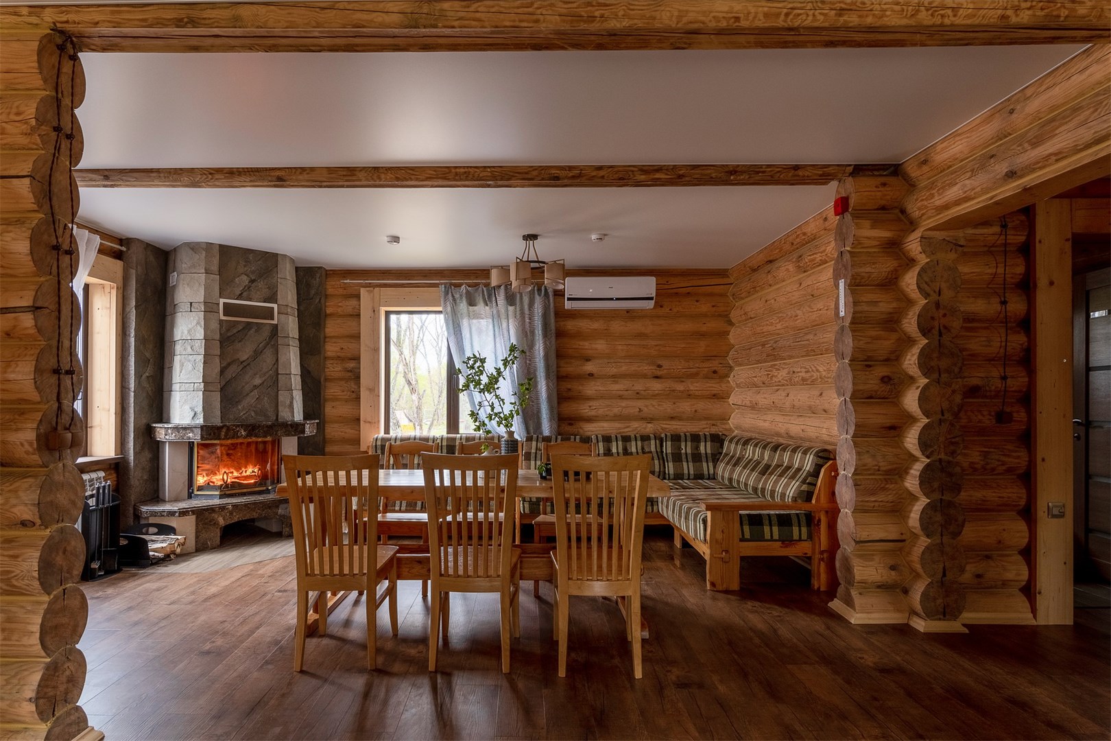 Большой дом из сруба ели, вручную сложенный сибирскими мастерами. Настоящая сказка! Здесь очень сладко дышится и спится.