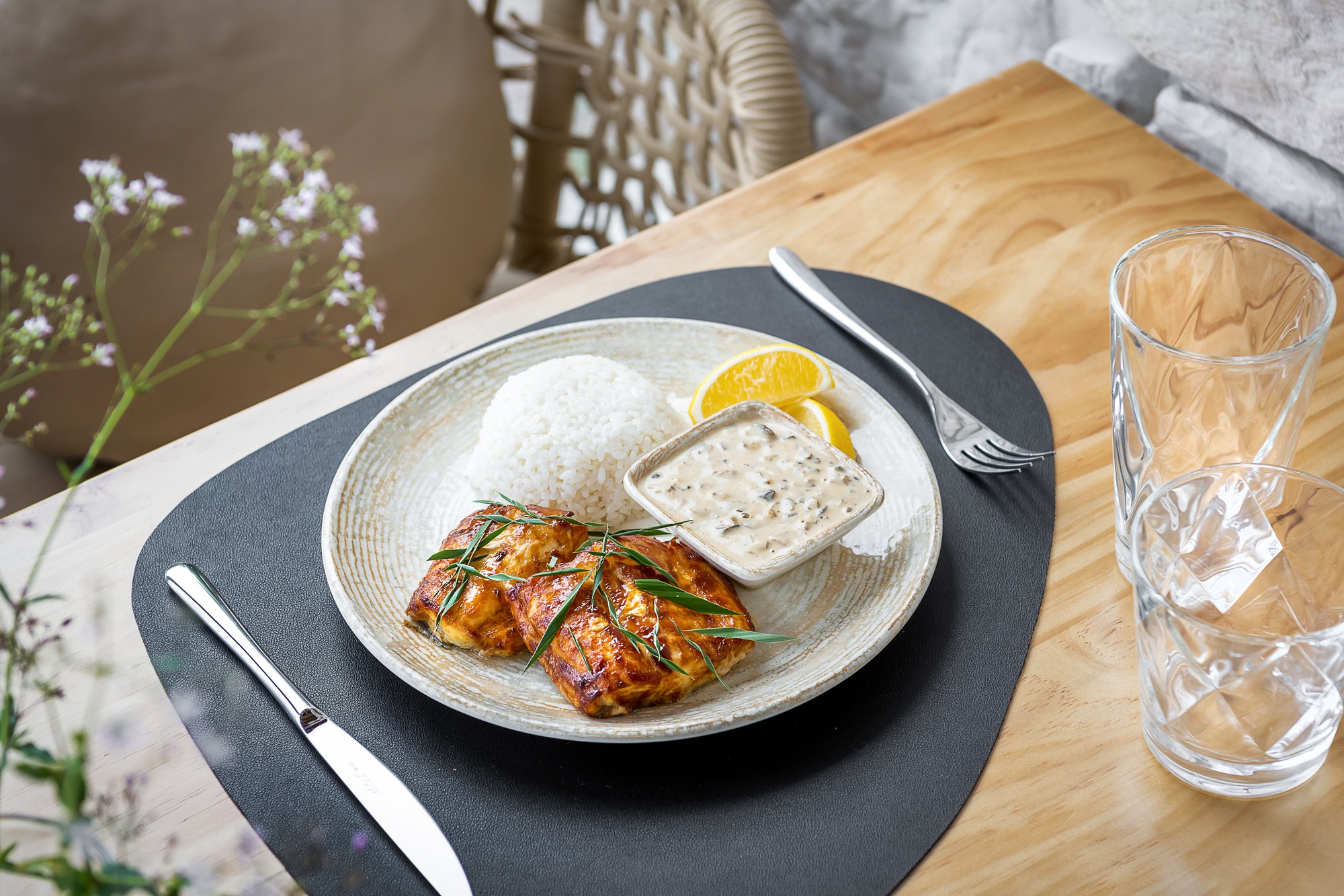 В ресторане представлена европейская кухня с блюдами из локальных продуктов, завтрак по типу «шведский стол». Работает ресторан в период с 1 мая по 5 ноября ежедневно.
